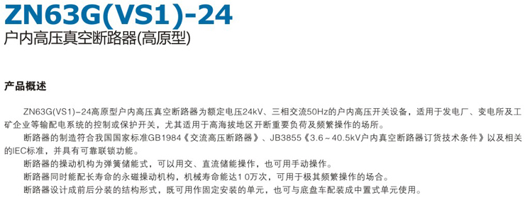 ZN63G(VS1)-24戶內(nèi)高壓真空斷路器(高原型)